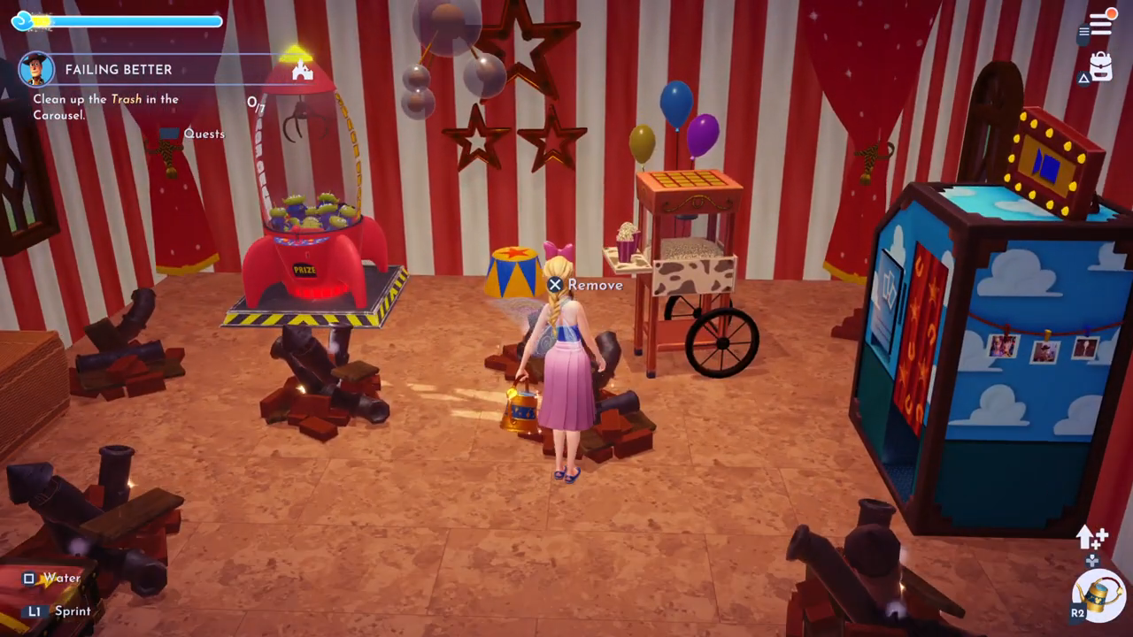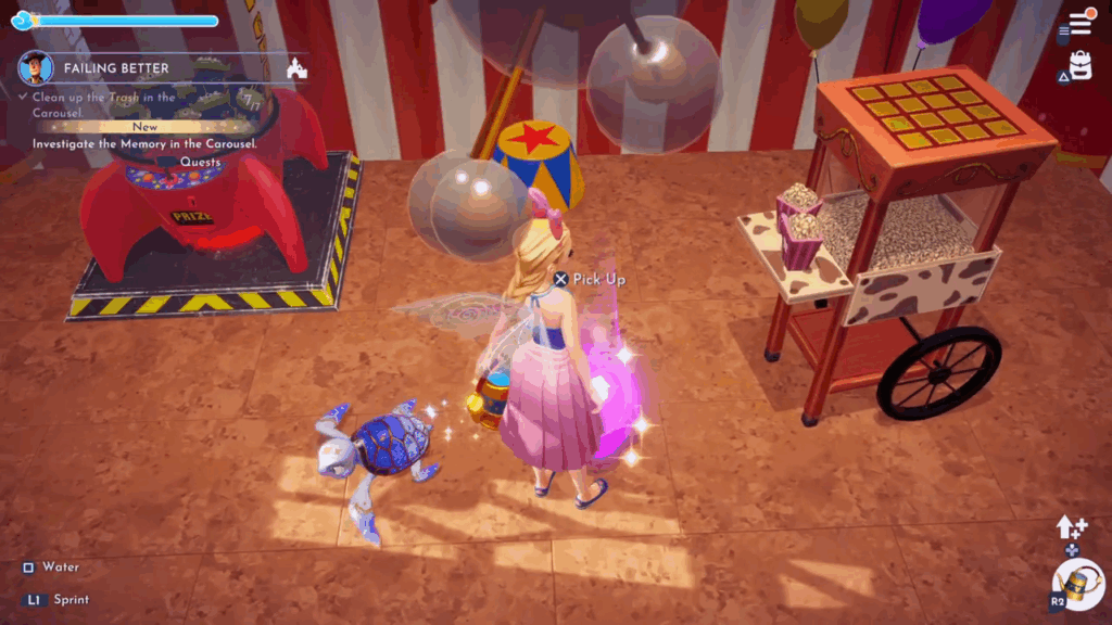 - Clean up the 7 trash in the Carousel: go inside the carousel, and by interacting with the trash, you clean it up.