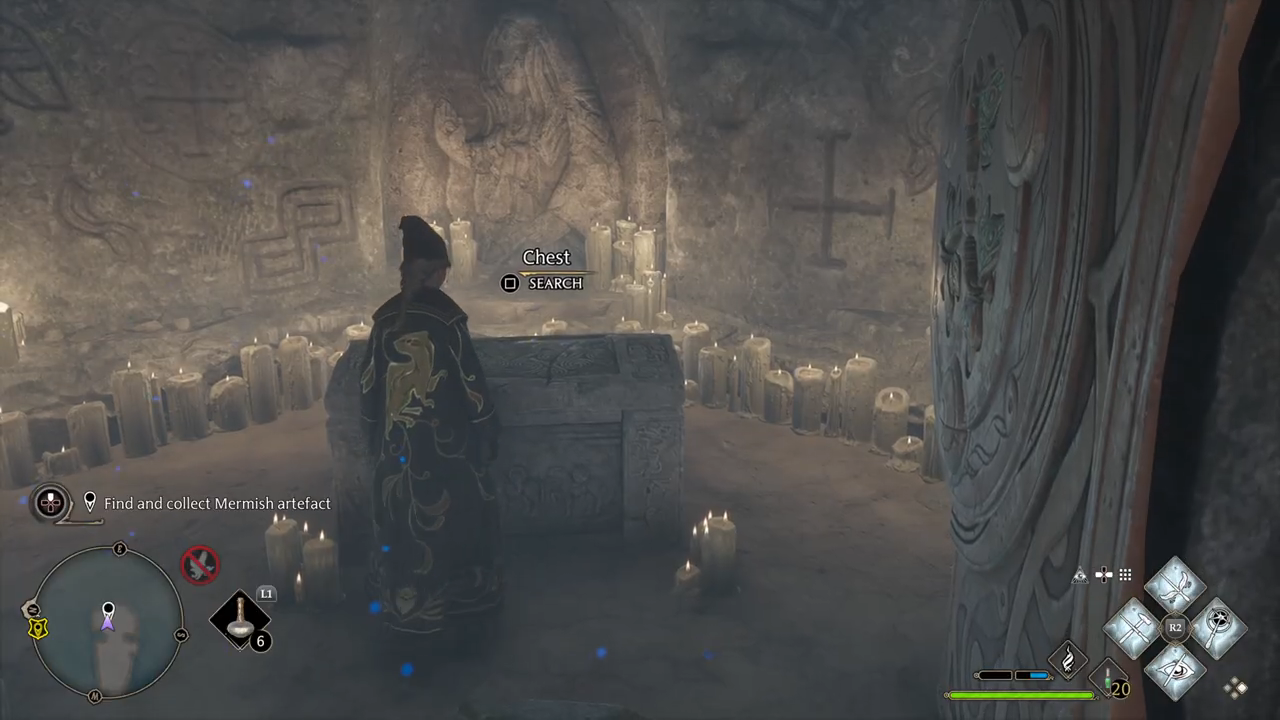 - Find and collect the Mermish artefact: solve the puzzles inside the cave with Confringo and Lumos and find the artefact.