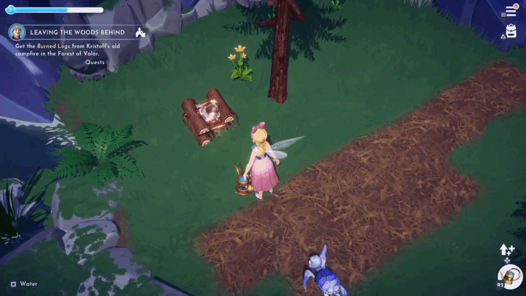 • Get the Burned Logs from Kristoff’s old campfire in the Forest of Valor: next to the stairs that lead to the Frosted Heights, you can find the campfire.
